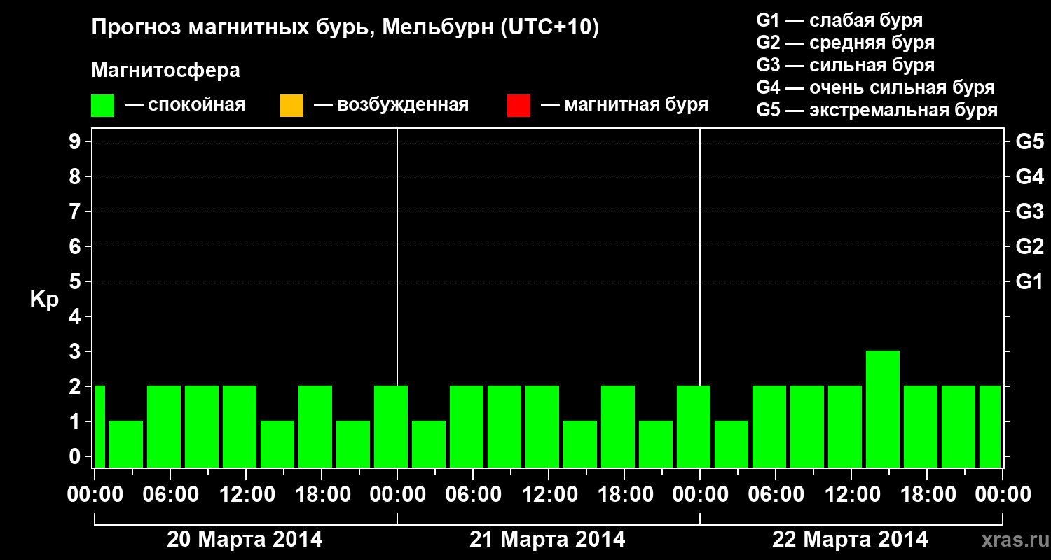 Прогноз магнитных бурь в Мельбурне — 20 марта 2014 года