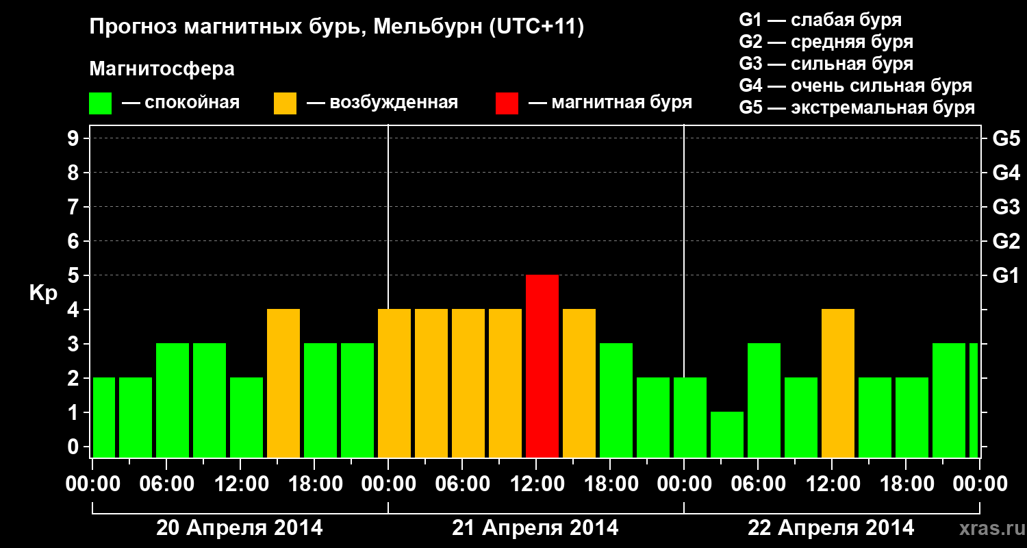 Прогноз магнитных бурь в Мельбурне — 20 апреля 2014 года