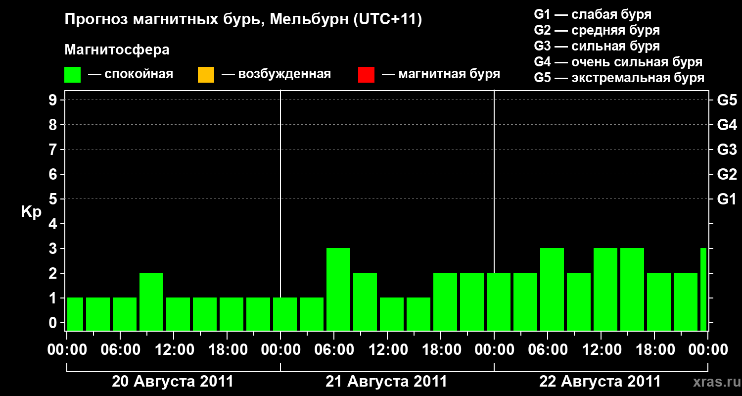 Прогноз магнитных бурь в Мельбурне — 20 августа 2011 года