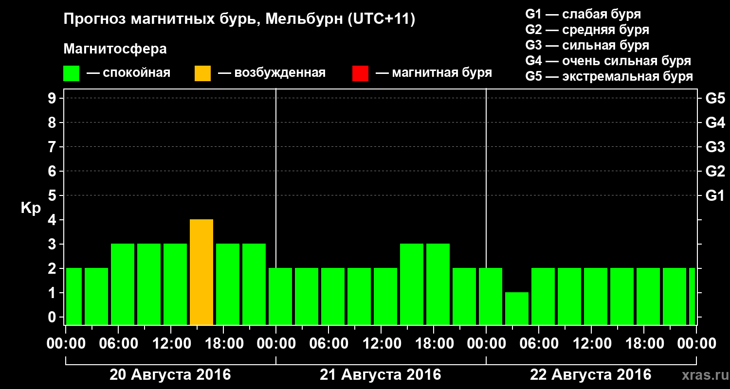 Прогноз магнитных бурь в Мельбурне — 20 августа 2016 года