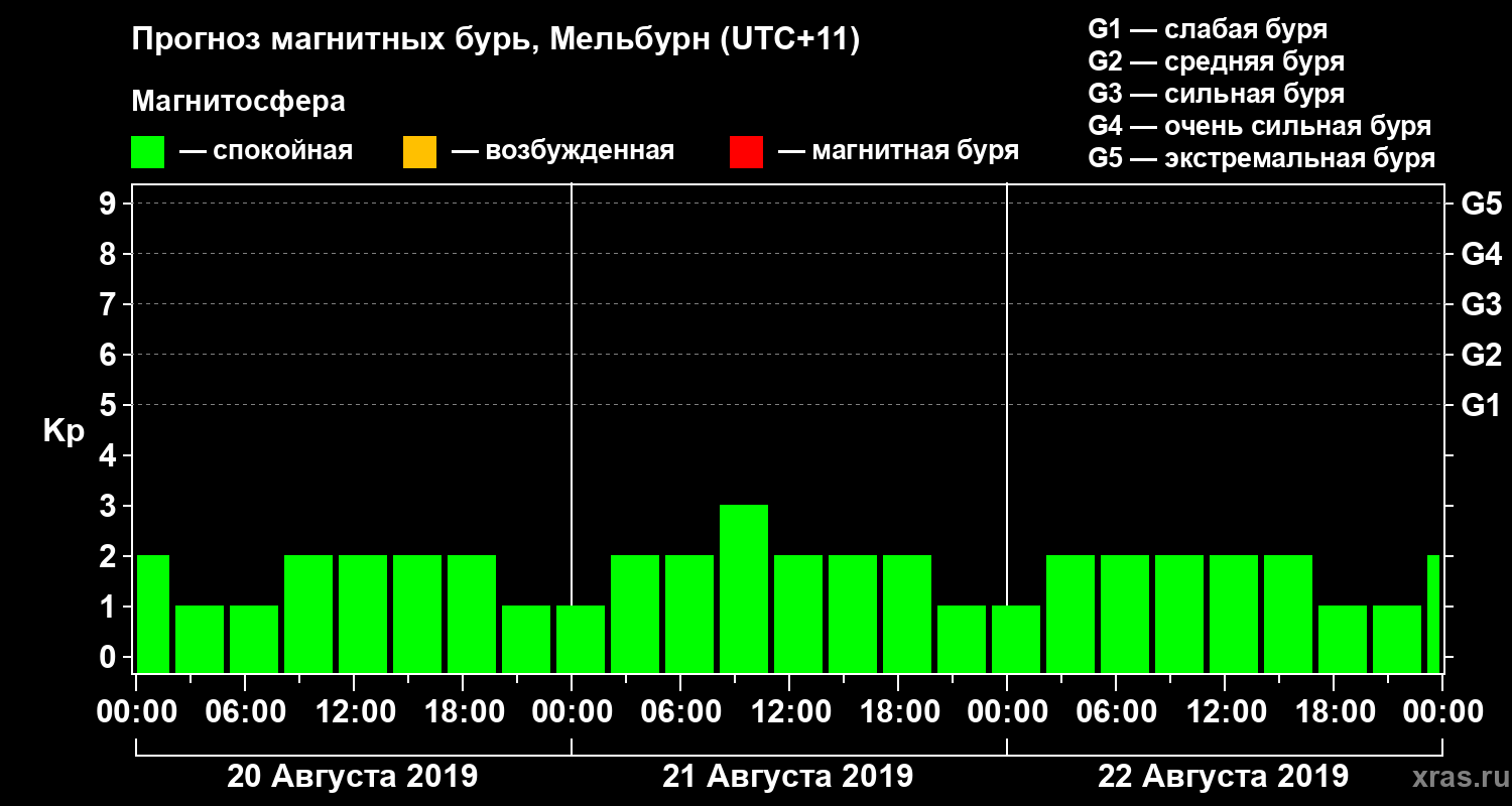 Прогноз магнитных бурь в Мельбурне — 20 августа 2019 года
