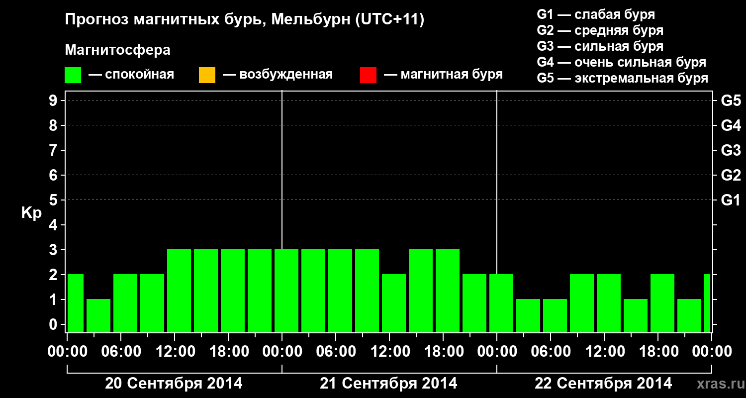 Прогноз магнитных бурь в Мельбурне — 20 сентября 2014 года