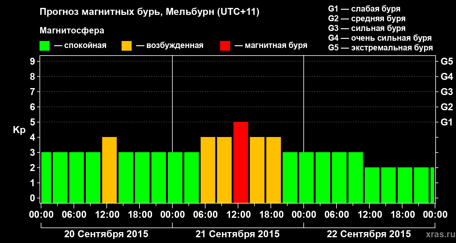 Прогноз магнитных бурь в Мельбурне — 20 сентября 2015 года