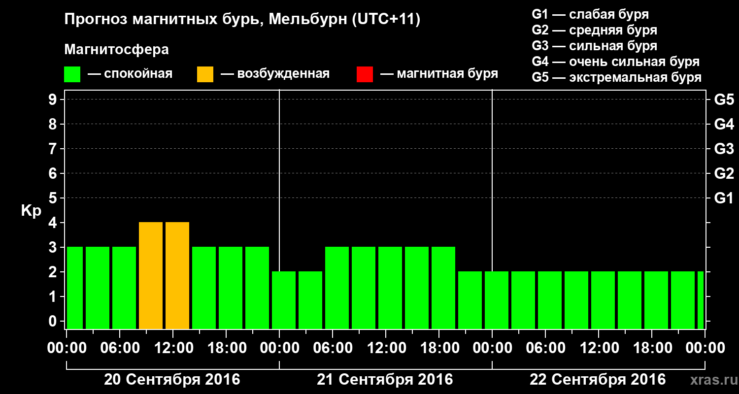 Прогноз магнитных бурь в Мельбурне — 20 сентября 2016 года