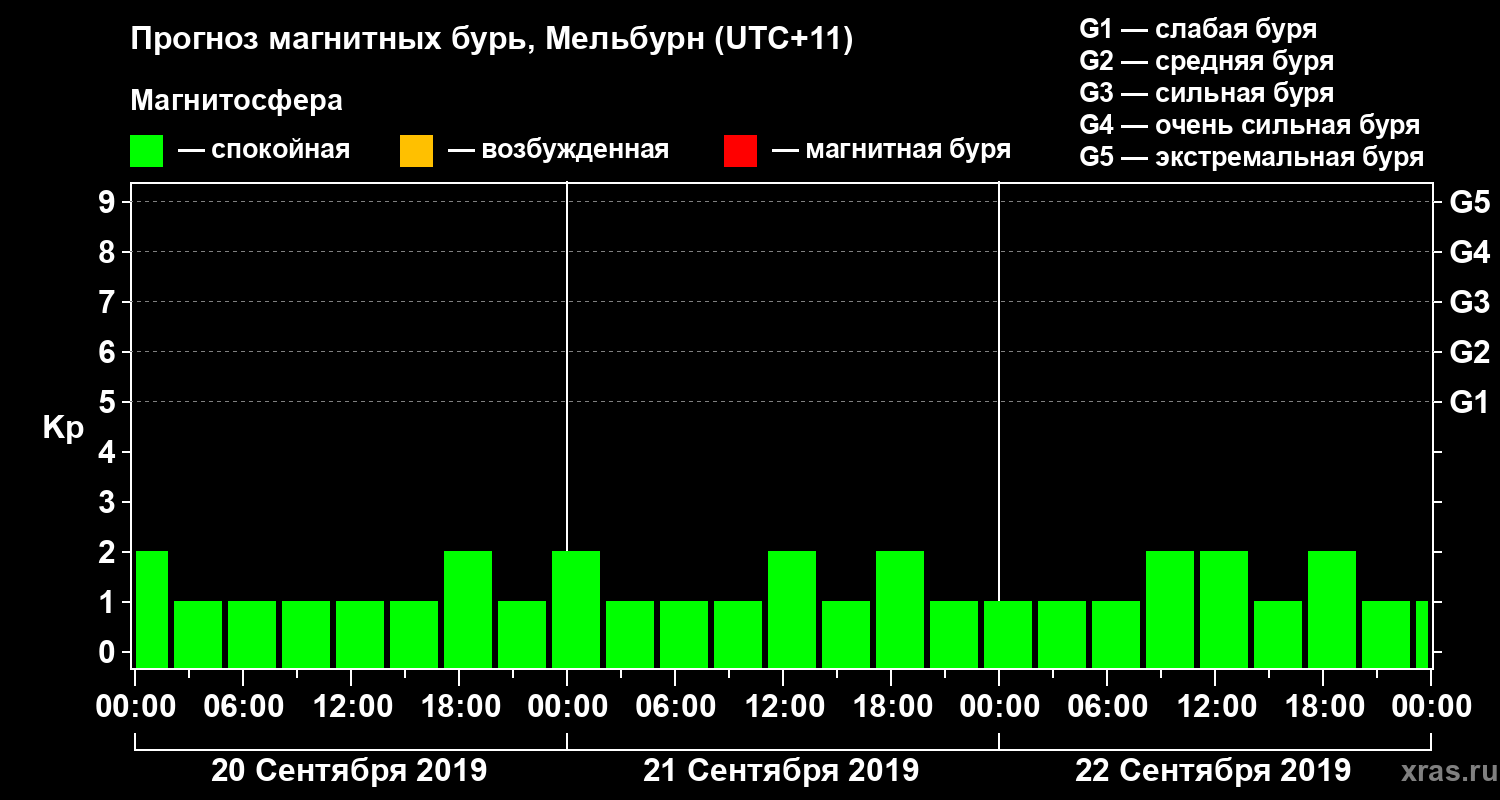 Прогноз магнитных бурь в Мельбурне — 20 сентября 2019 года