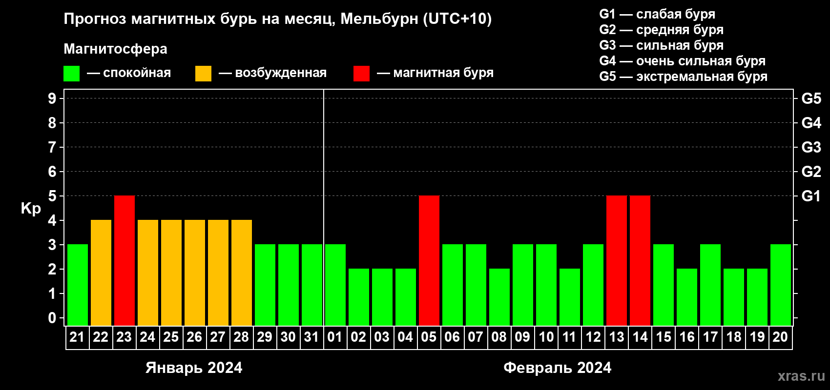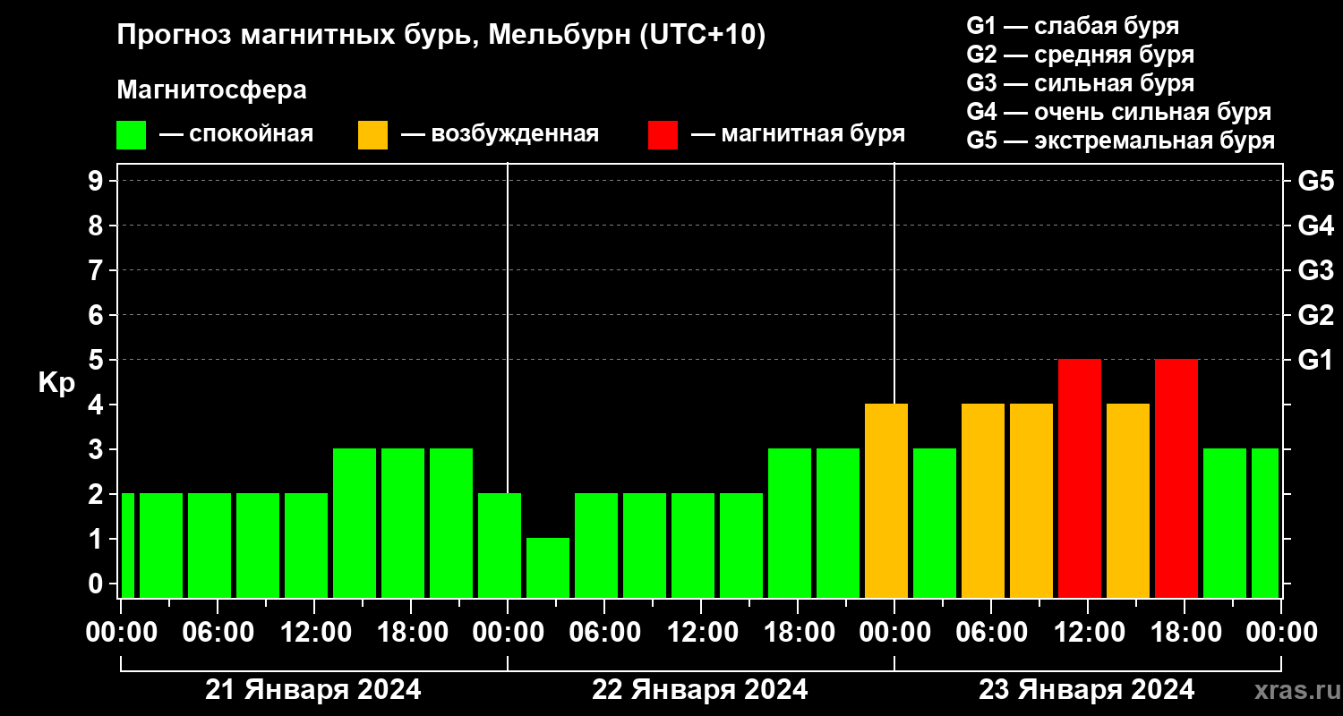 Прогноз магнитных бурь в Мельбурне — 21 января 2024 года
