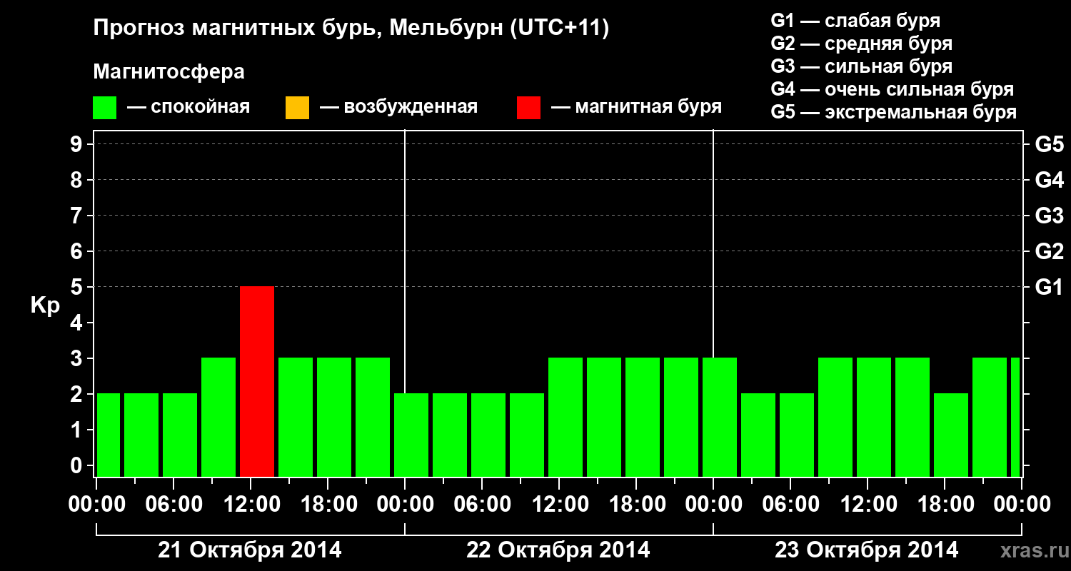 Прогноз магнитных бурь в Мельбурне — 21 октября 2014 года