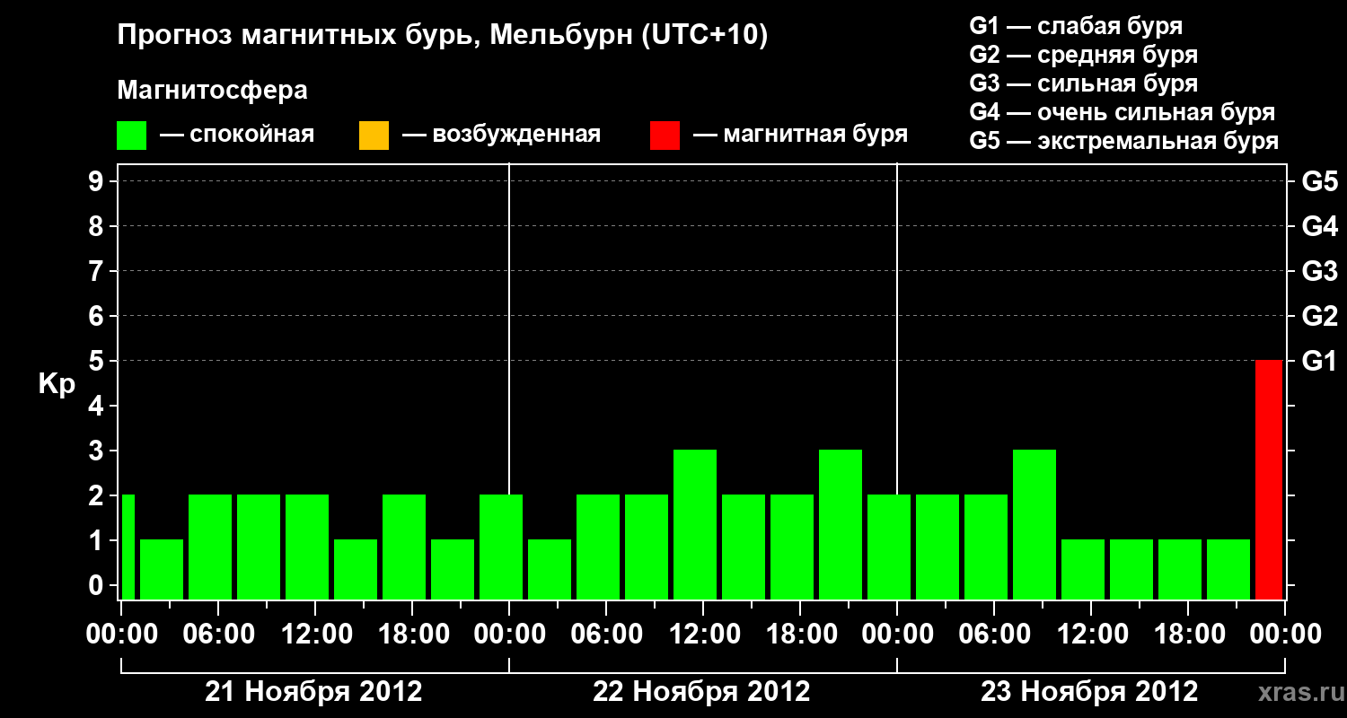 Прогноз магнитных бурь в Мельбурне — 21 ноября 2012 года