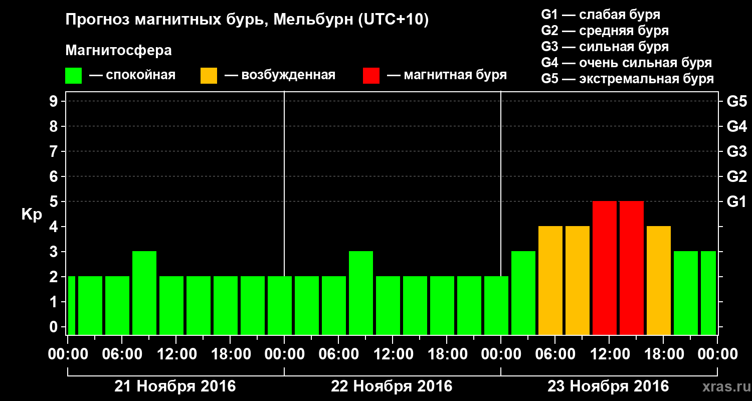 Прогноз магнитных бурь в Мельбурне — 21 ноября 2016 года