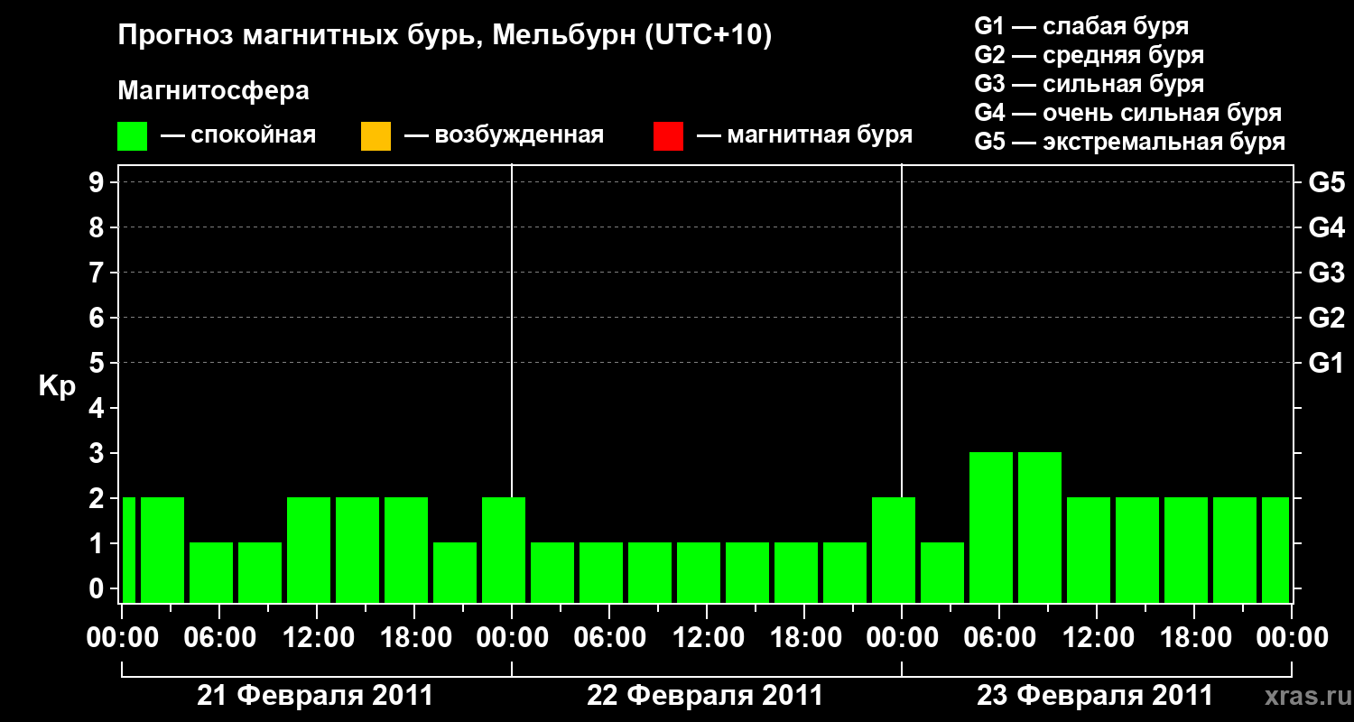 Прогноз магнитных бурь в Мельбурне — 21 февраля 2011 года