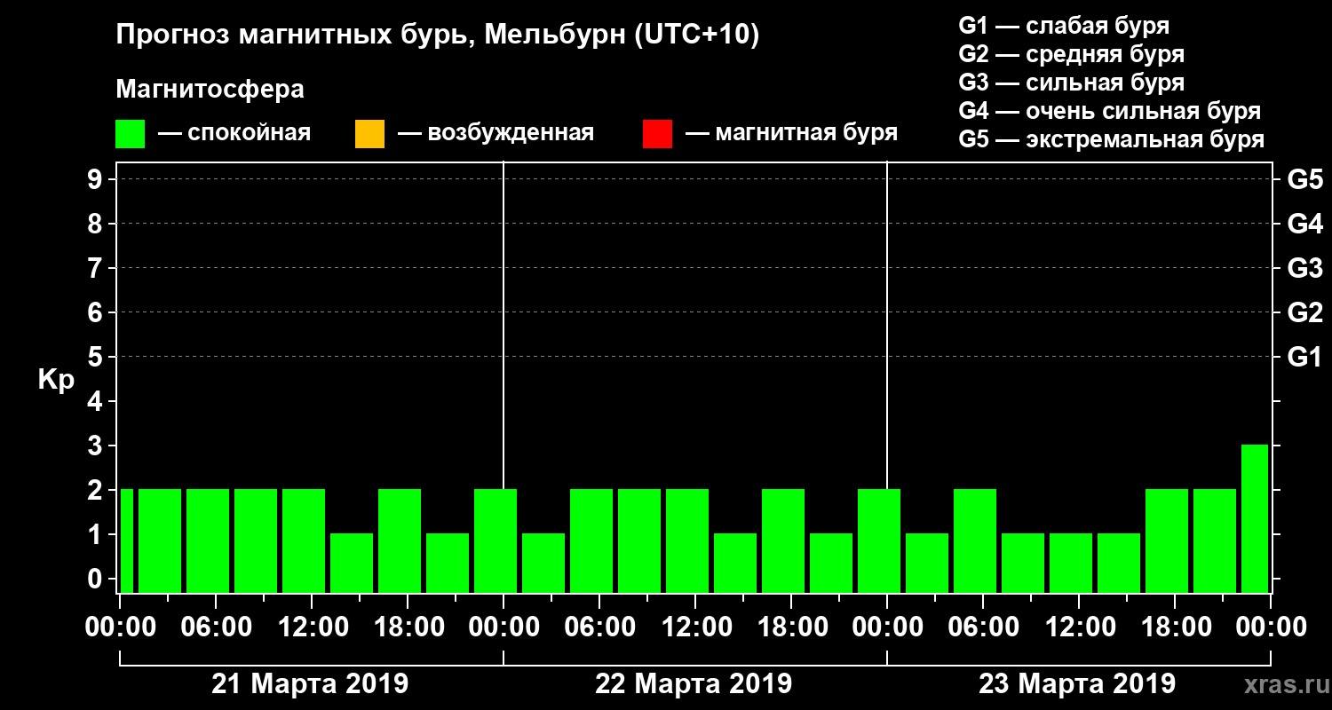 Прогноз магнитных бурь в Мельбурне — 21 марта 2019 года