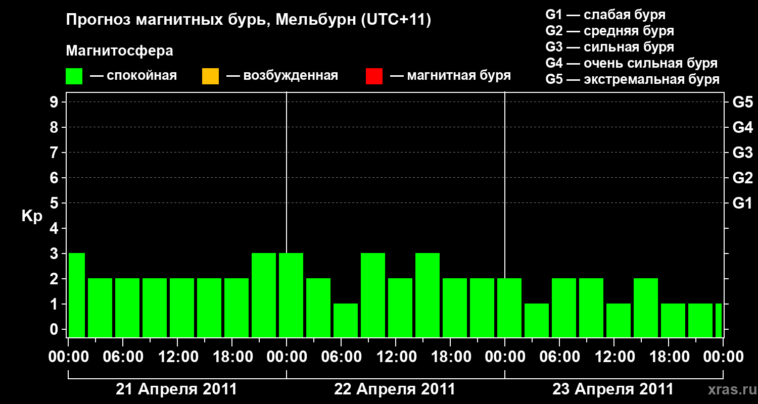 Прогноз магнитных бурь в Мельбурне — 21 апреля 2011 года