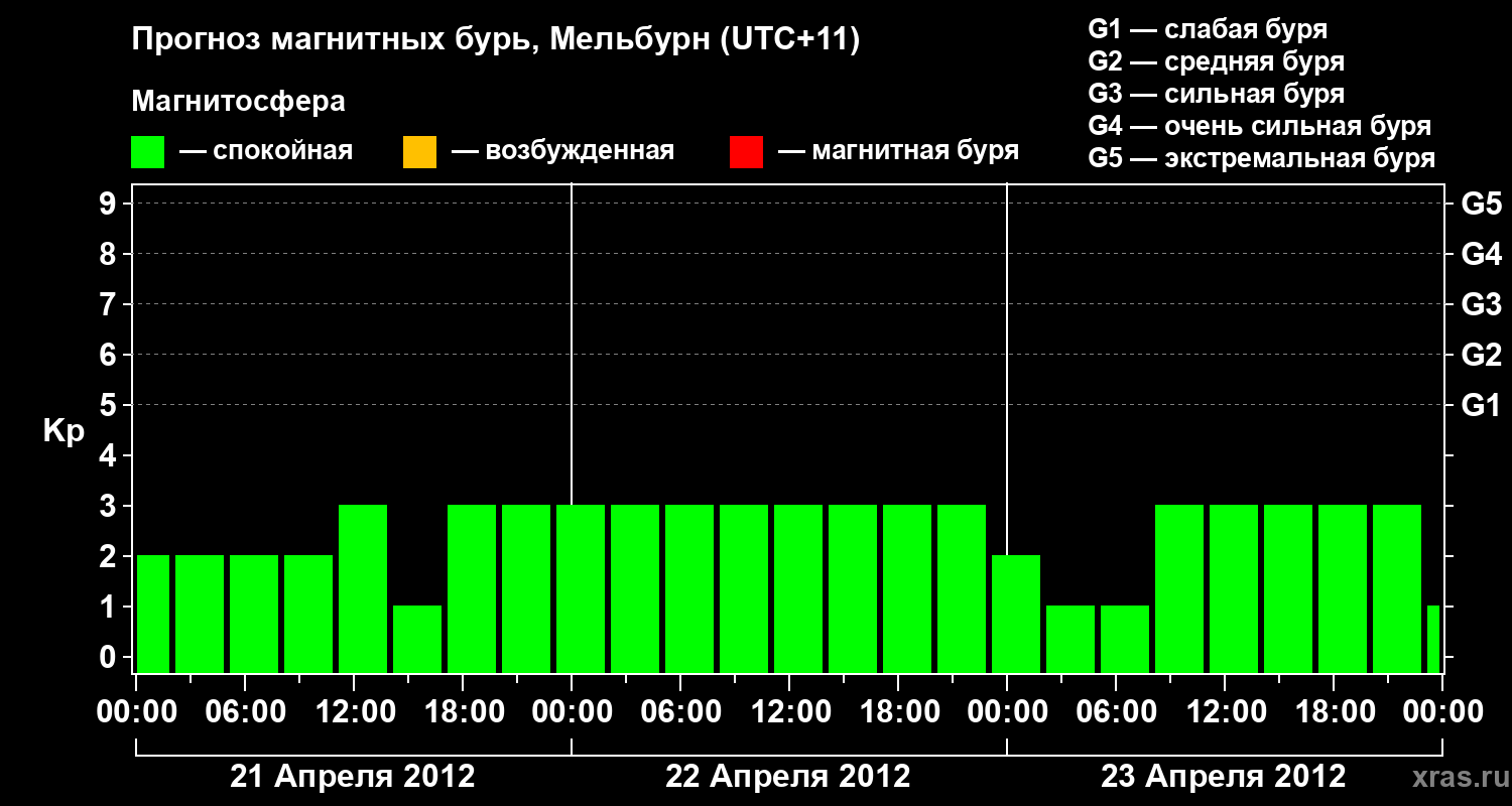 Прогноз магнитных бурь в Мельбурне — 21 апреля 2012 года
