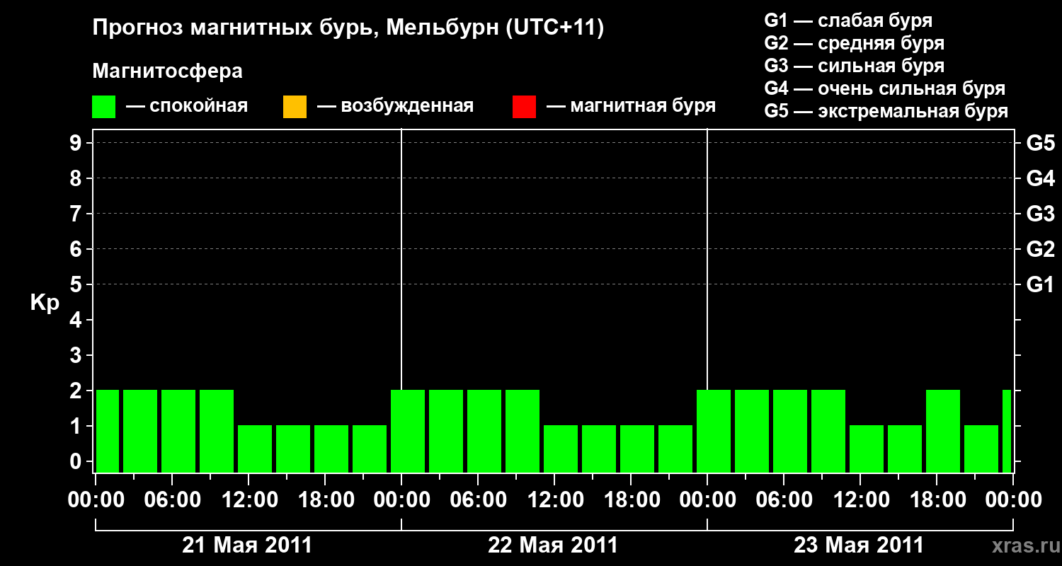 Прогноз магнитных бурь в Мельбурне — 21 мая 2011 года