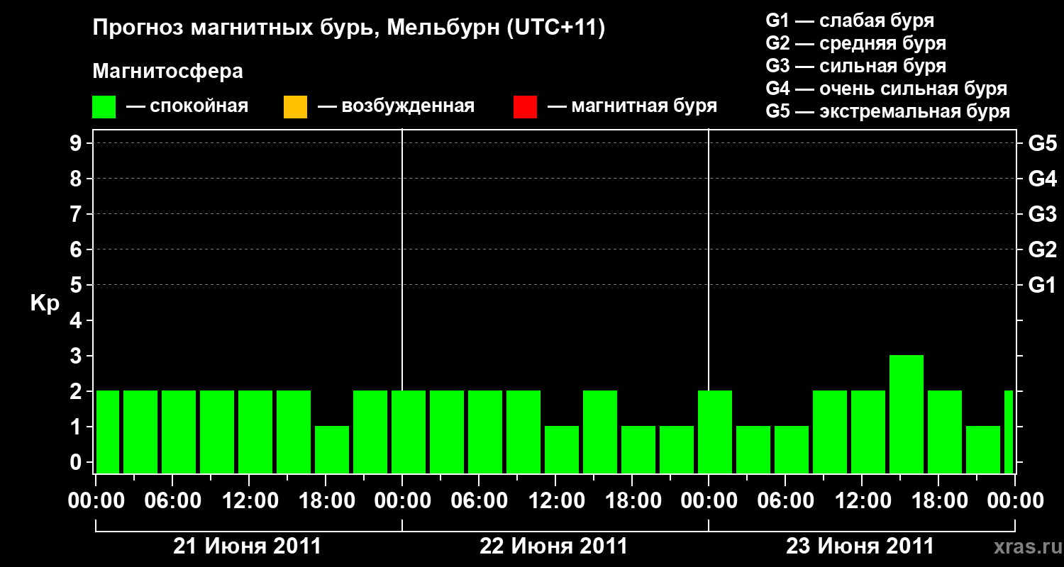 Прогноз магнитных бурь в Мельбурне — 21 июня 2011 года