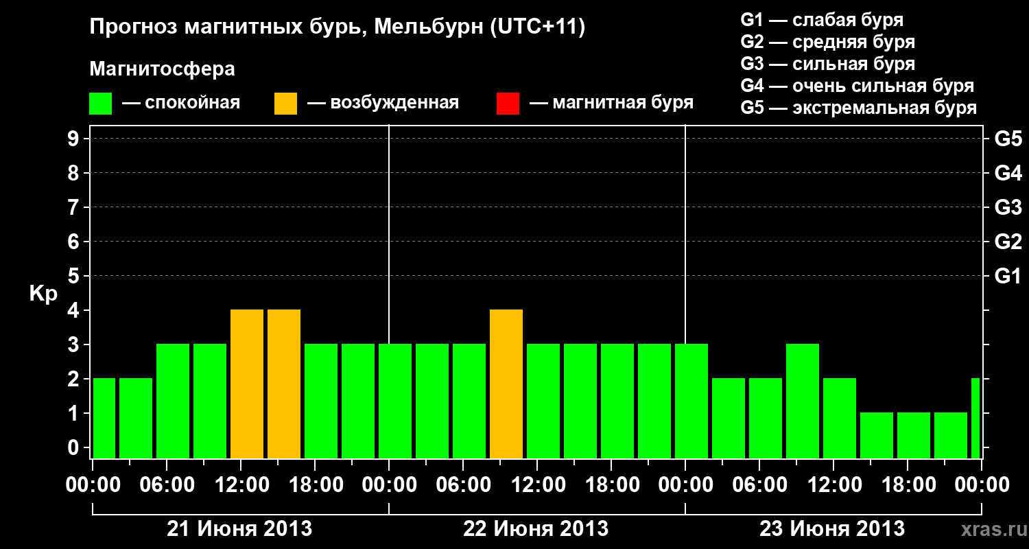 Прогноз магнитных бурь в Мельбурне — 21 июня 2013 года