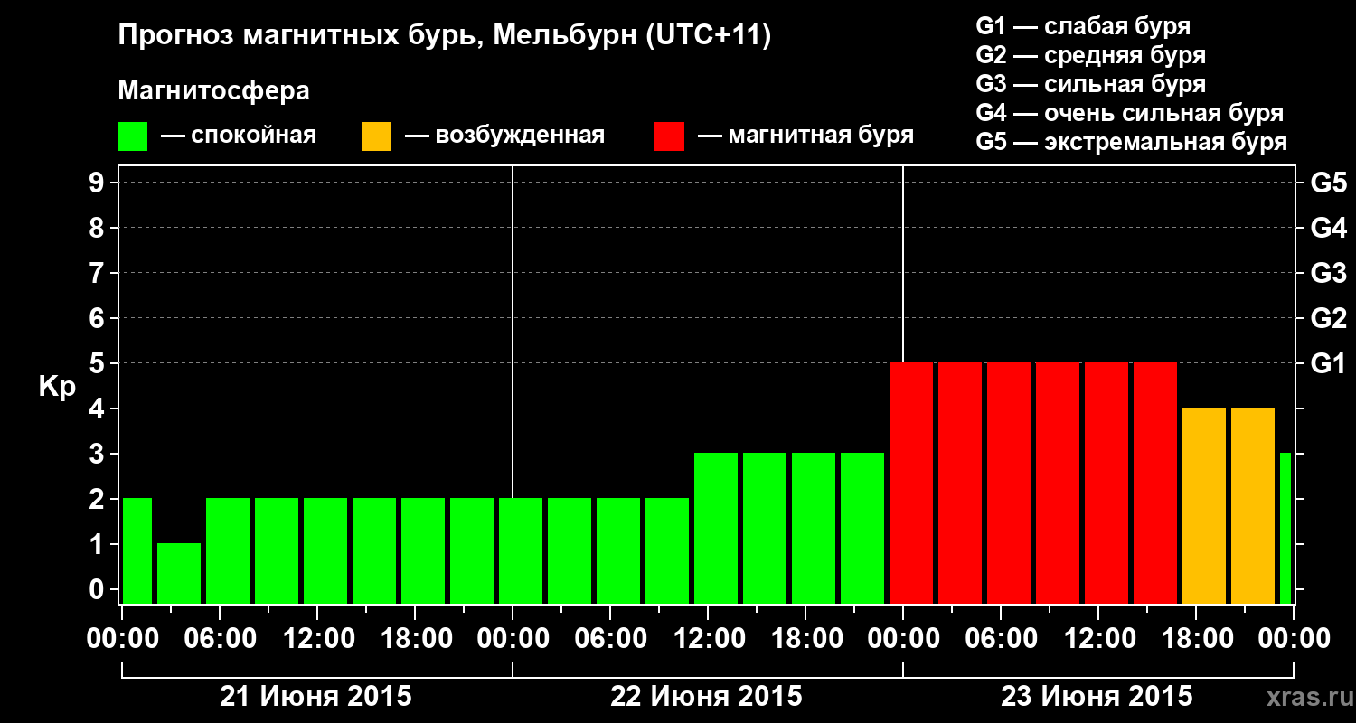 Прогноз магнитных бурь в Мельбурне — 21 июня 2015 года