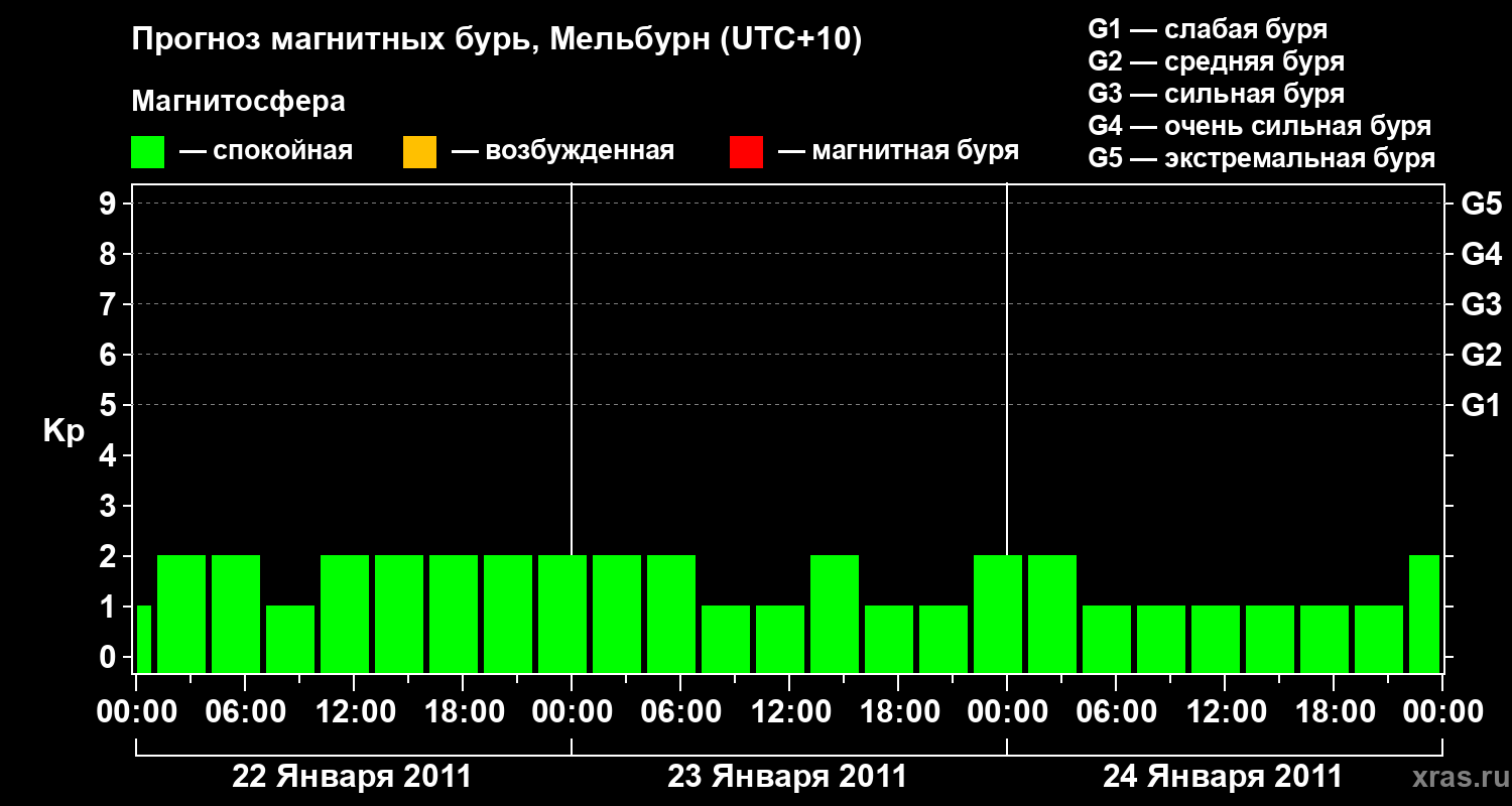 Прогноз магнитных бурь в Мельбурне — 22 января 2011 года