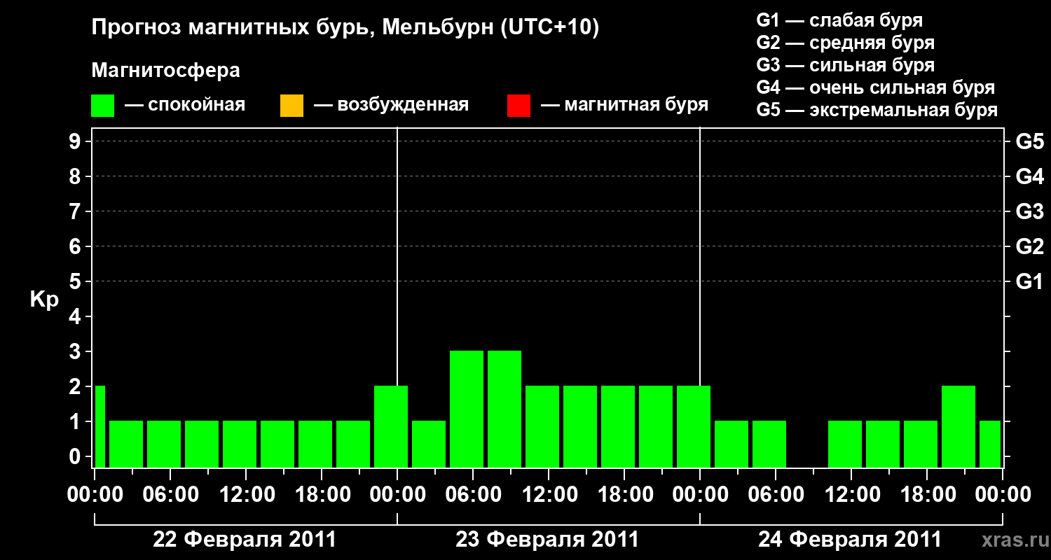 Прогноз магнитных бурь в Мельбурне — 22 февраля 2011 года