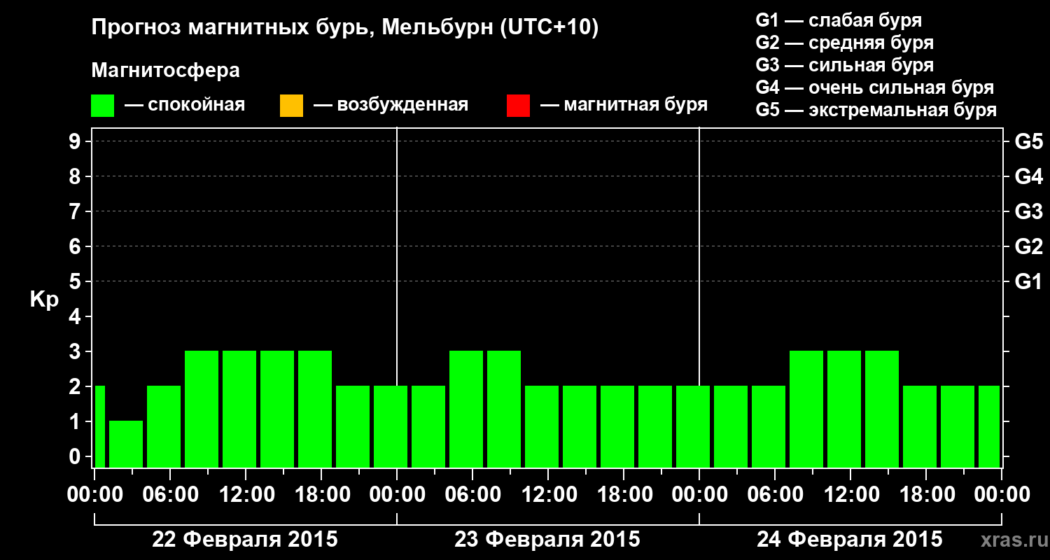 Прогноз магнитных бурь в Мельбурне — 22 февраля 2015 года