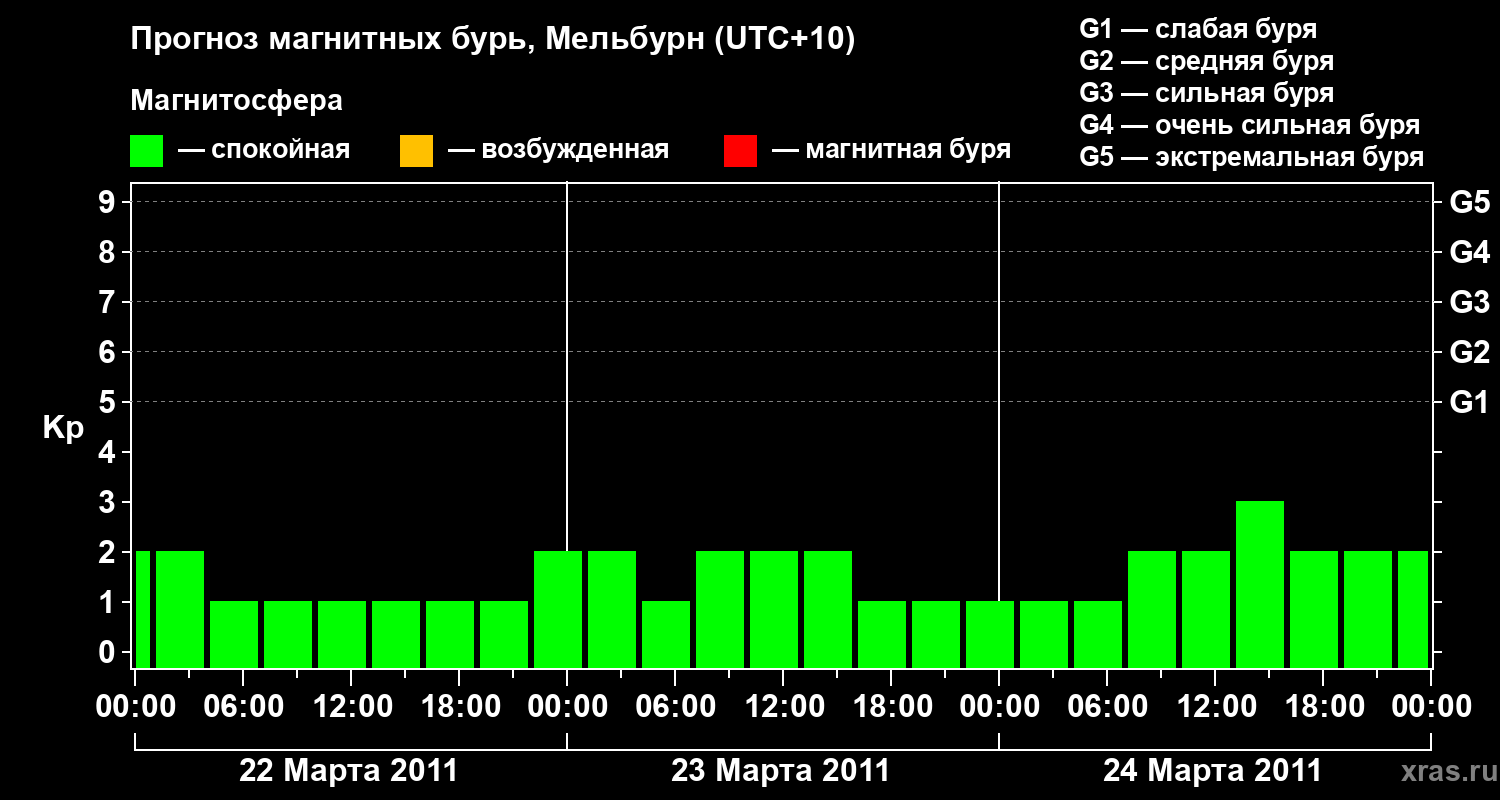 Прогноз магнитных бурь в Мельбурне — 22 марта 2011 года