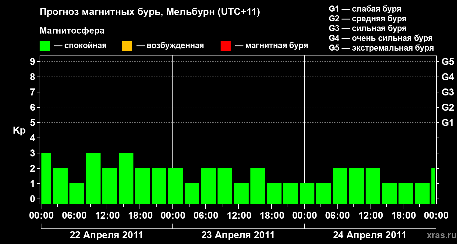 Прогноз магнитных бурь в Мельбурне — 22 апреля 2011 года