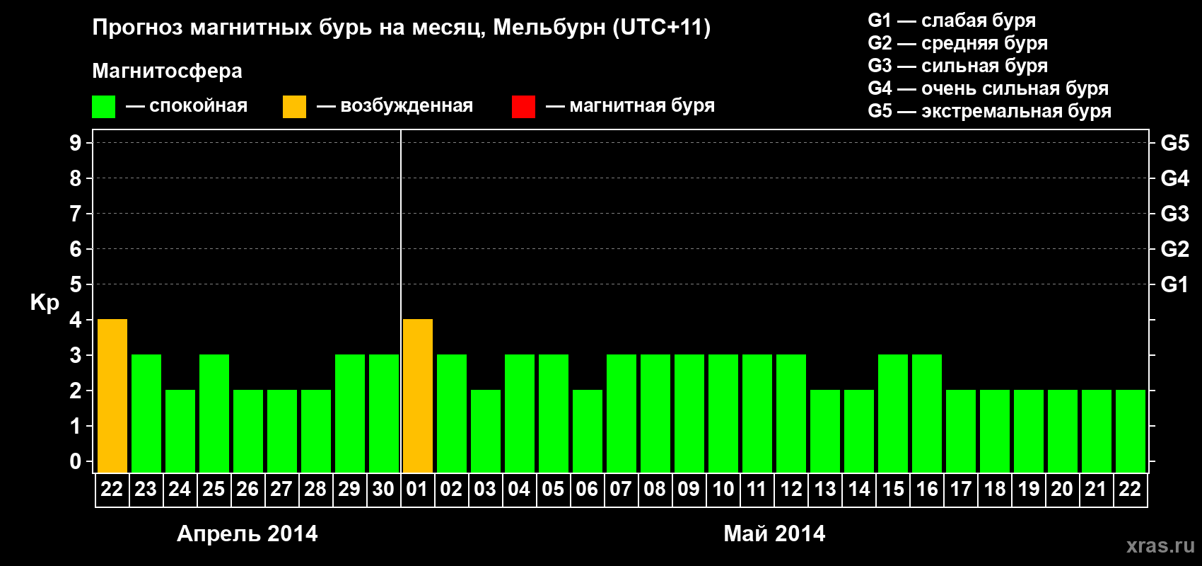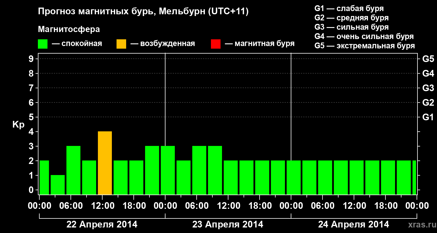 Прогноз магнитных бурь в Мельбурне — 22 апреля 2014 года