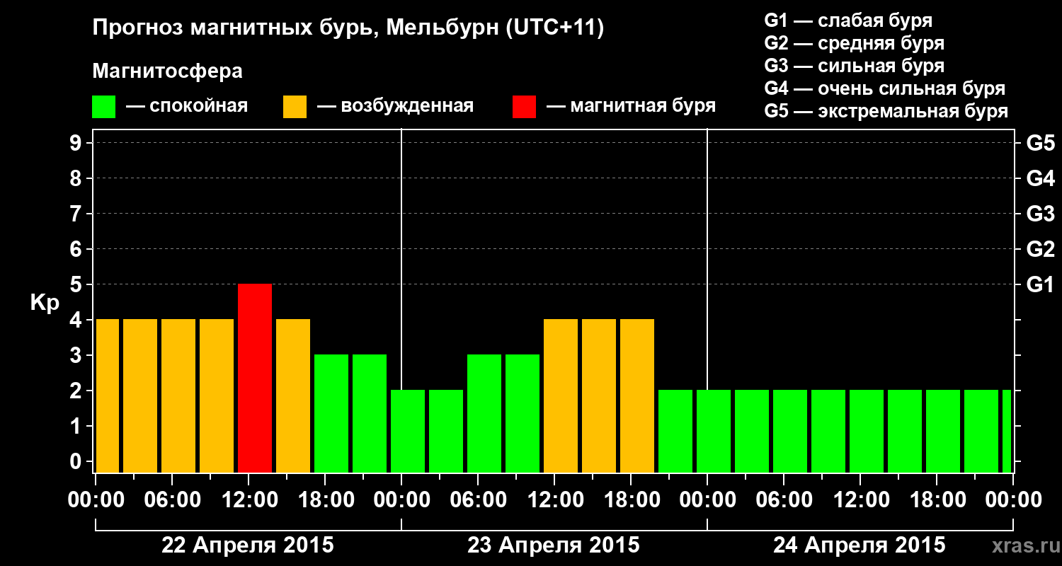 Прогноз магнитных бурь в Мельбурне — 22 апреля 2015 года