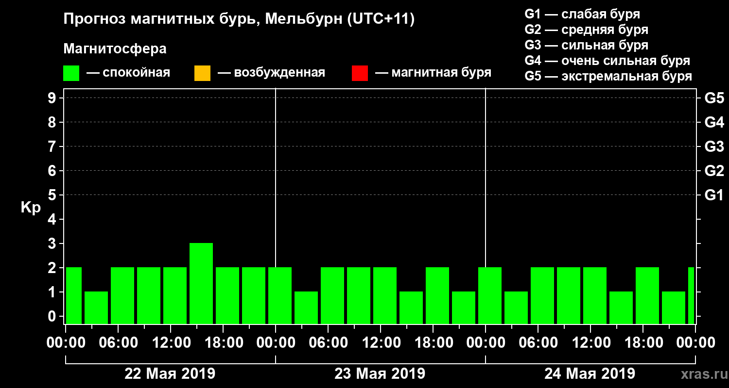Прогноз магнитных бурь в Мельбурне — 22 мая 2019 года