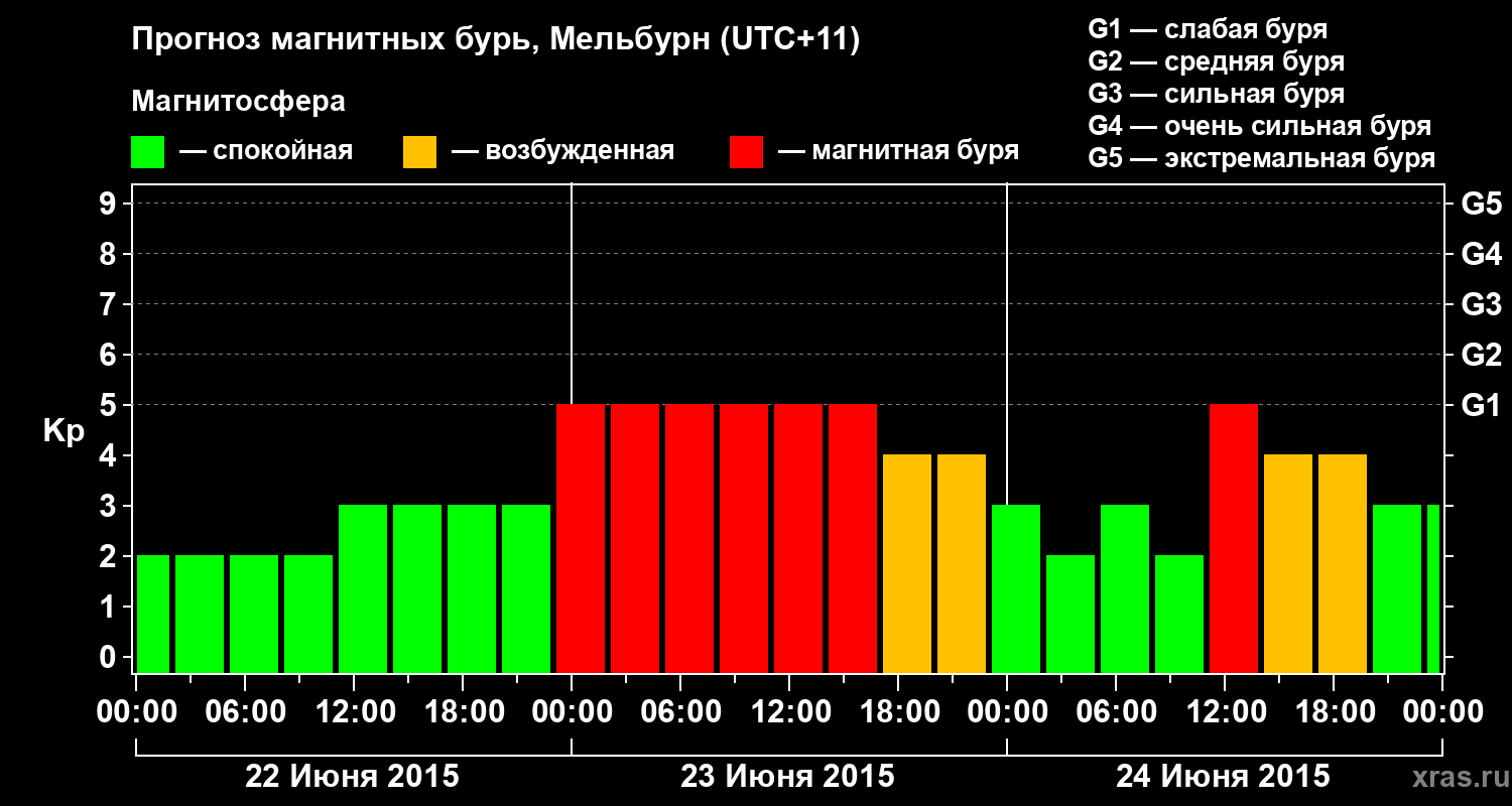 Прогноз магнитных бурь в Мельбурне — 22 июня 2015 года
