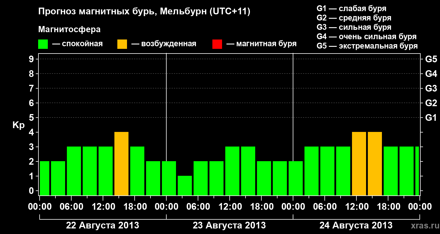 Прогноз магнитных бурь в Мельбурне — 22 августа 2013 года