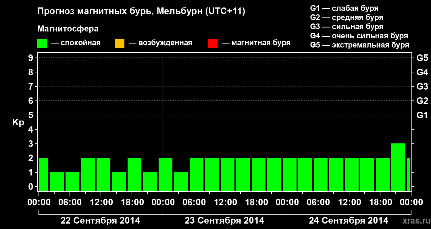 Прогноз магнитных бурь в Мельбурне — 22 сентября 2014 года