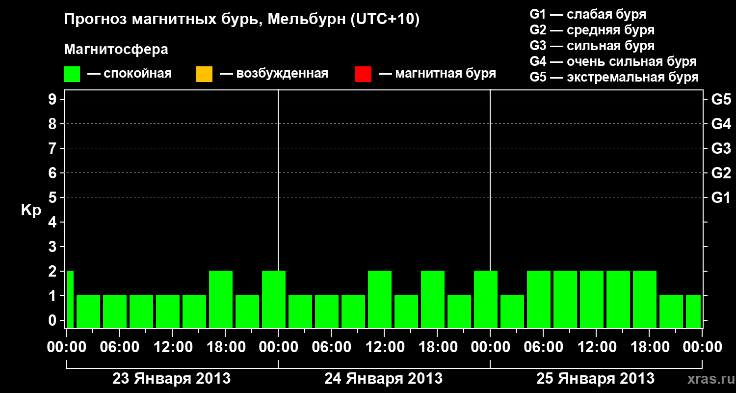 Прогноз магнитных бурь в Мельбурне — 23 января 2013 года