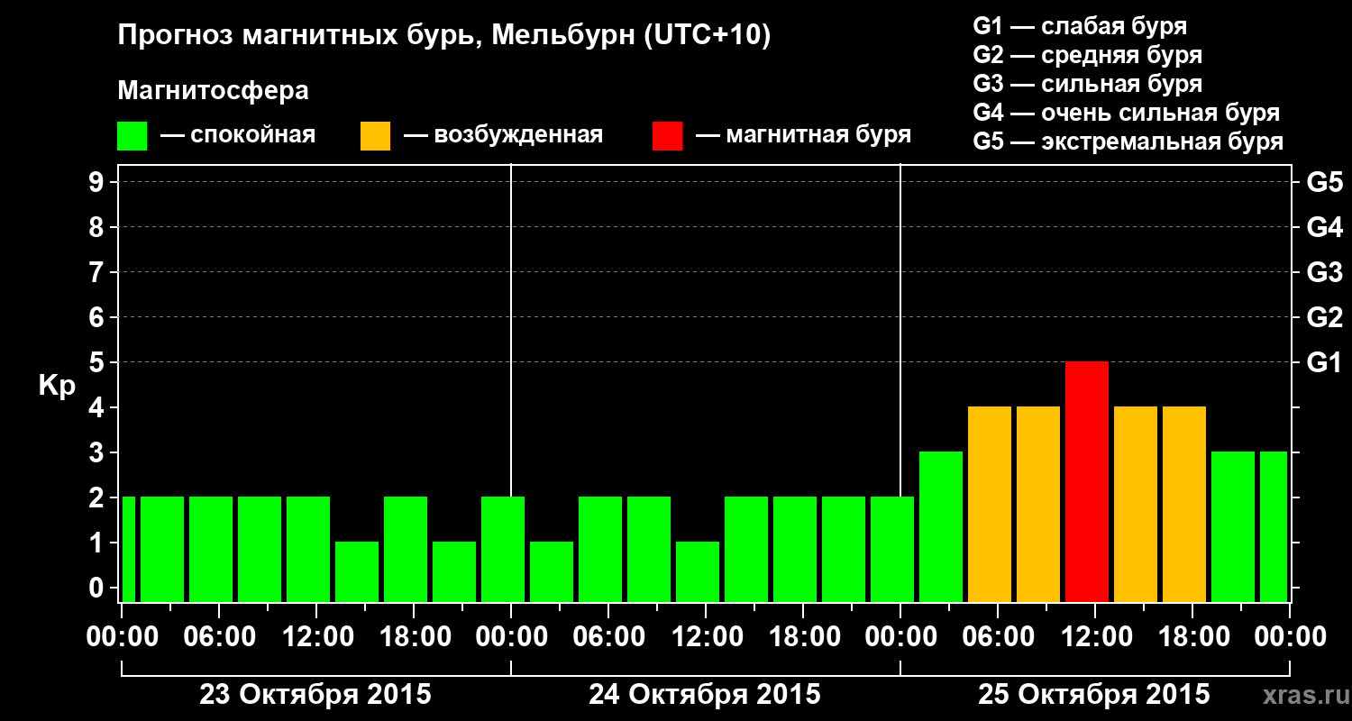Прогноз магнитных бурь в Мельбурне — 23 октября 2015 года