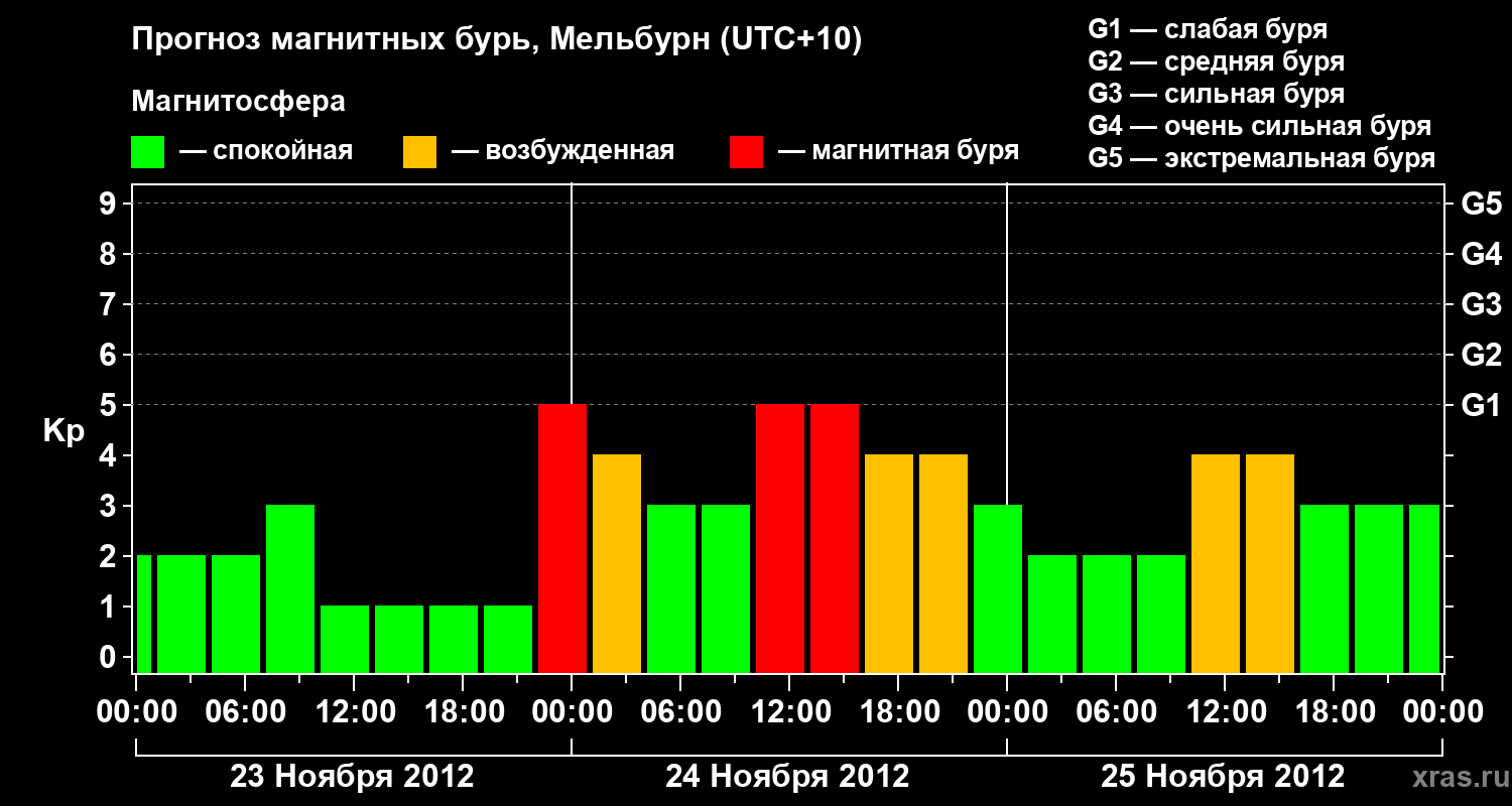 Прогноз магнитных бурь в Мельбурне — 23 ноября 2012 года