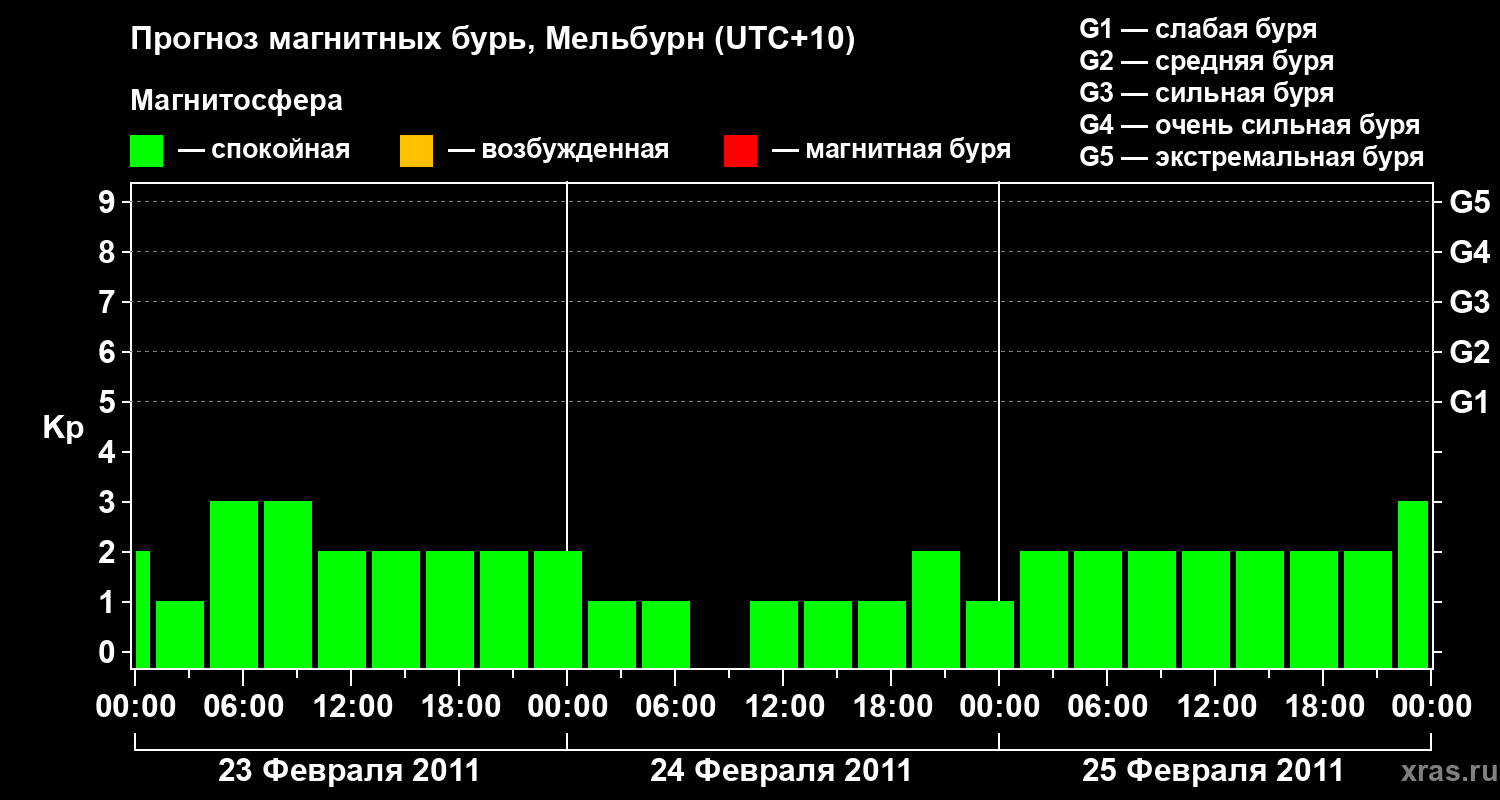 Прогноз магнитных бурь в Мельбурне — 23 февраля 2011 года