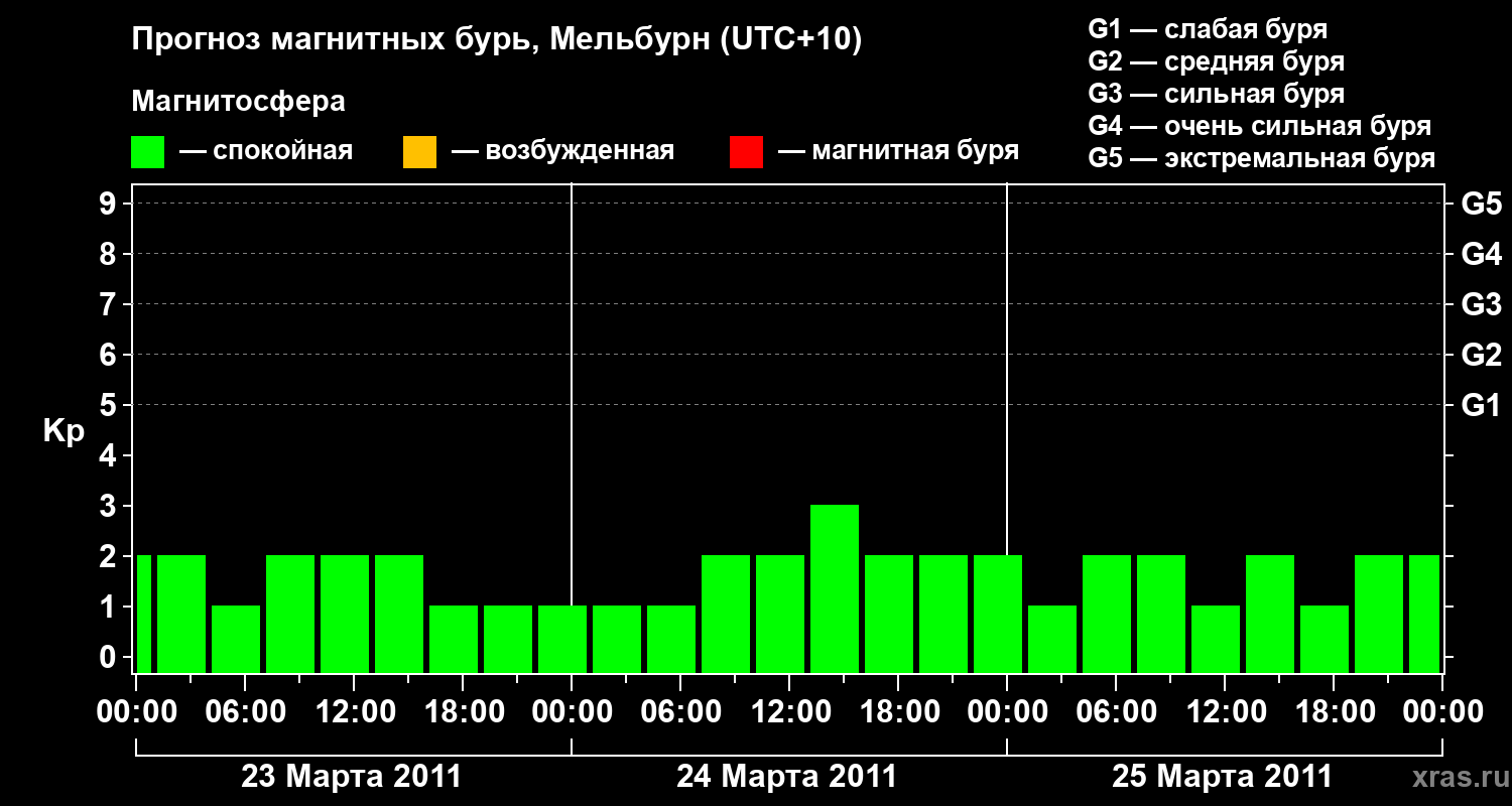Прогноз магнитных бурь в Мельбурне — 23 марта 2011 года
