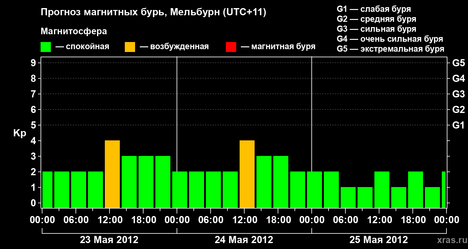 Прогноз магнитных бурь в Мельбурне — 23 мая 2012 года