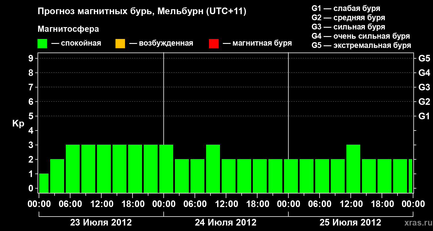 Прогноз магнитных бурь в Мельбурне — 23 июля 2012 года
