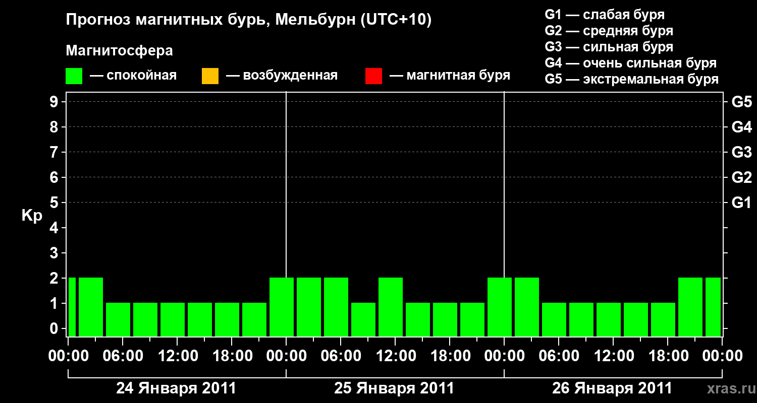 Прогноз магнитных бурь в Мельбурне — 24 января 2011 года