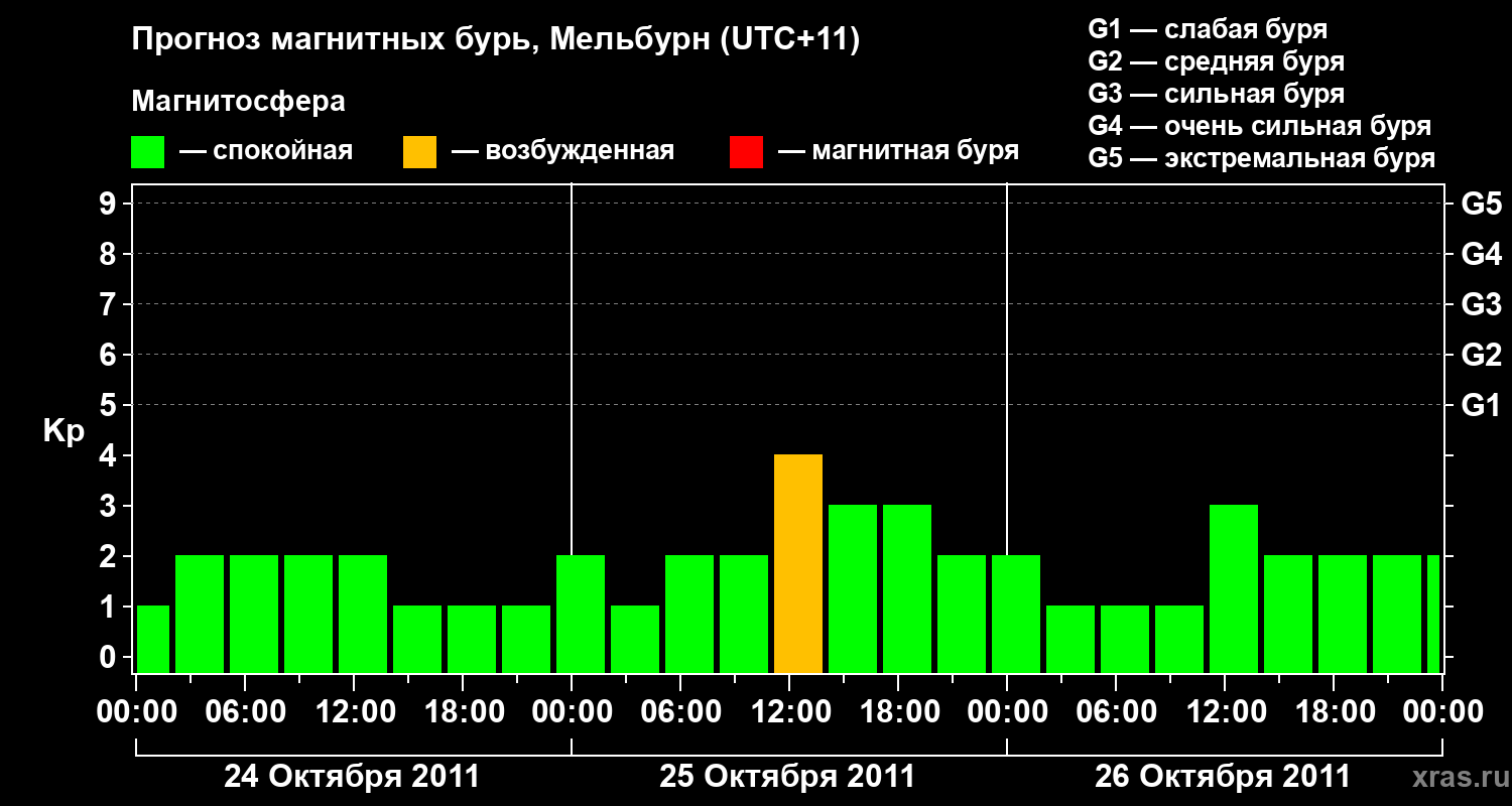 Прогноз магнитных бурь в Мельбурне — 24 октября 2011 года