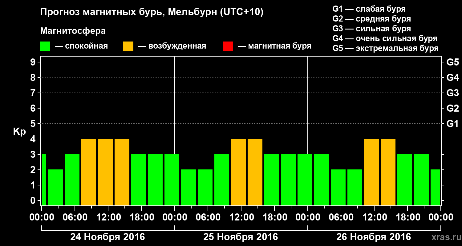 Прогноз магнитных бурь в Мельбурне — 24 ноября 2016 года