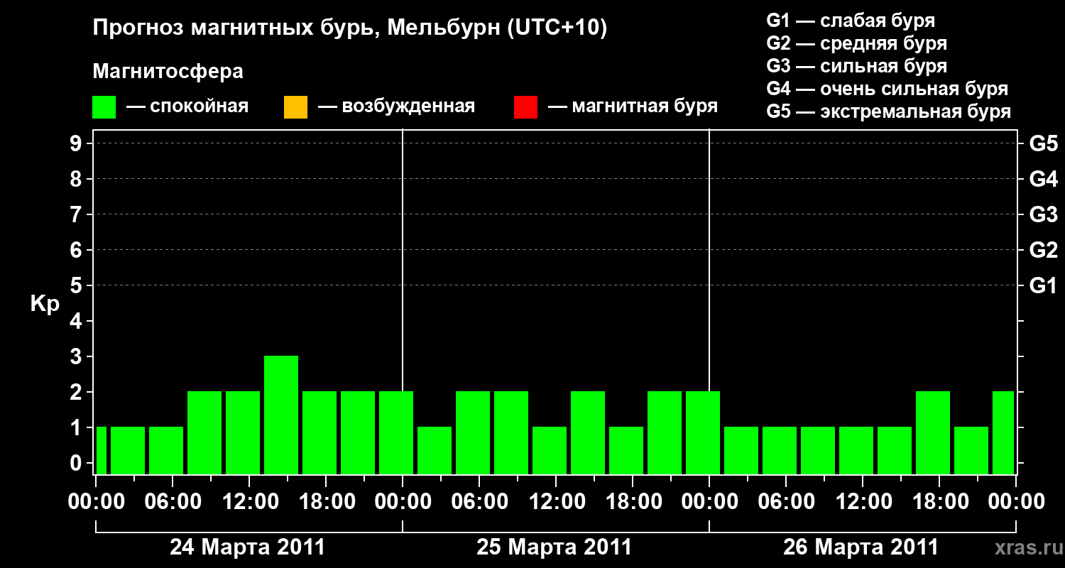 Прогноз магнитных бурь в Мельбурне — 24 марта 2011 года