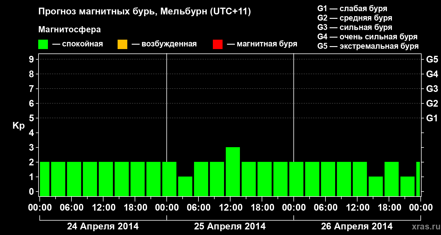 Прогноз магнитных бурь в Мельбурне — 24 апреля 2014 года