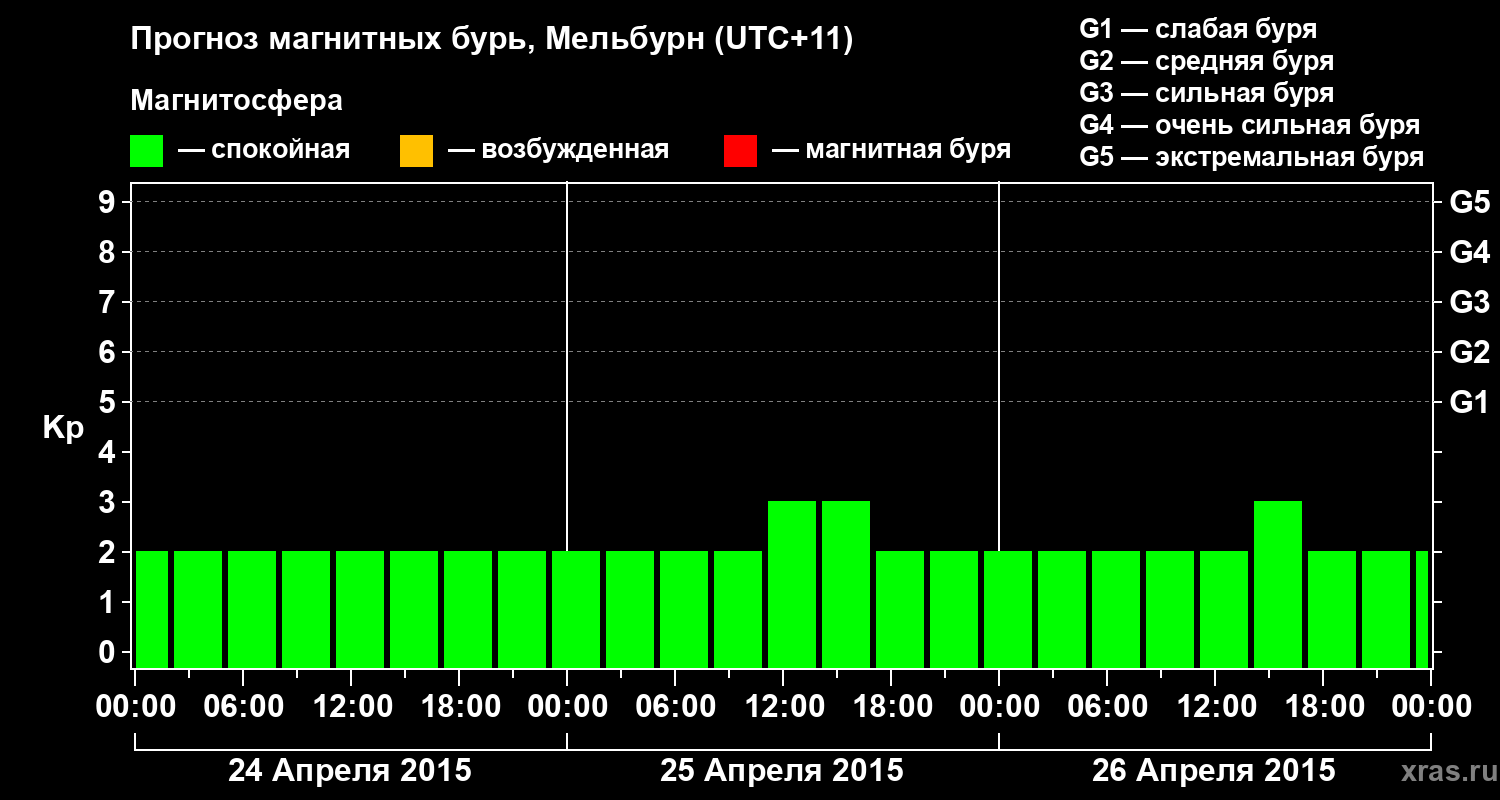 Прогноз магнитных бурь в Мельбурне — 24 апреля 2015 года