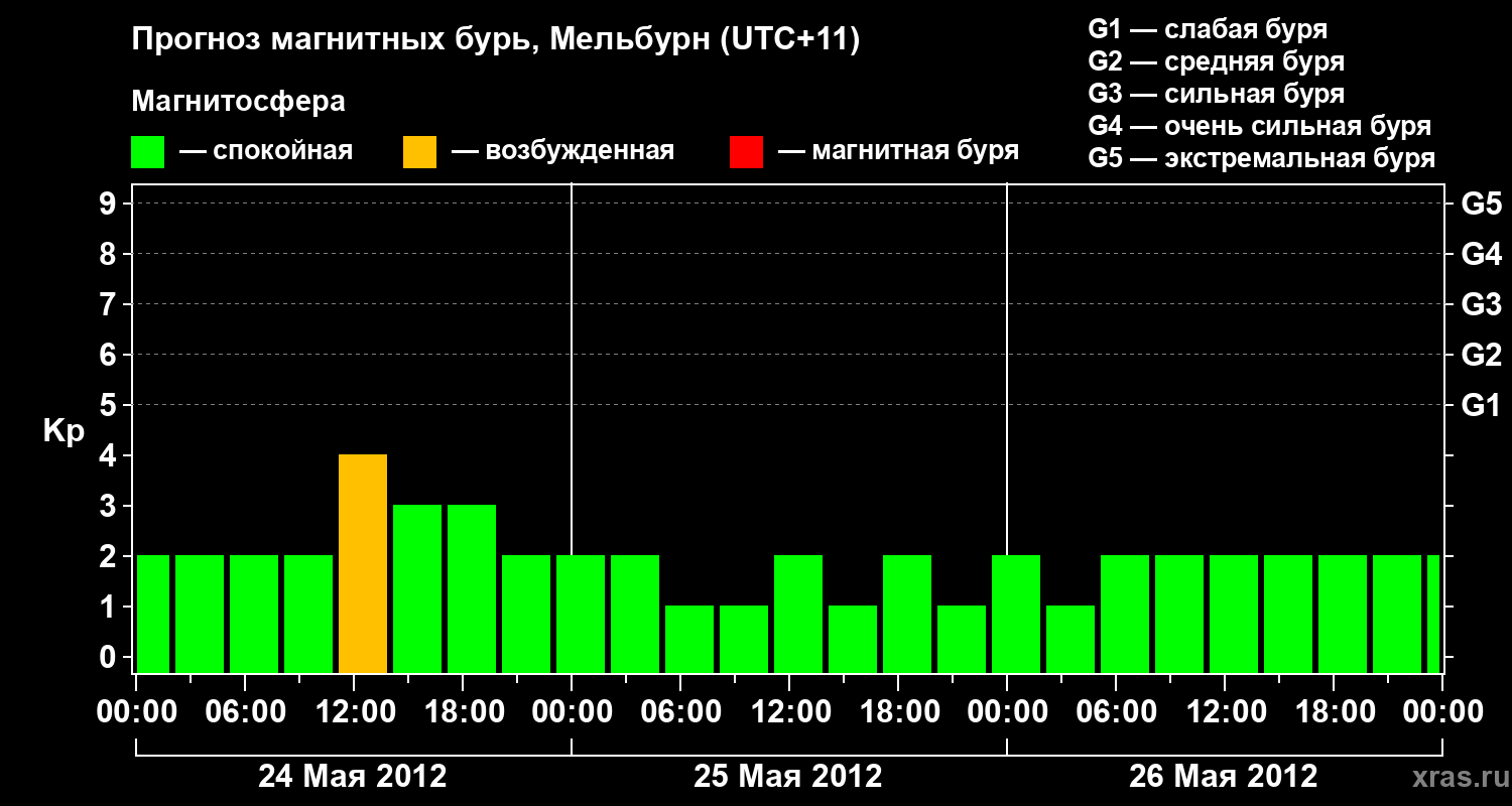 Прогноз магнитных бурь в Мельбурне — 24 мая 2012 года