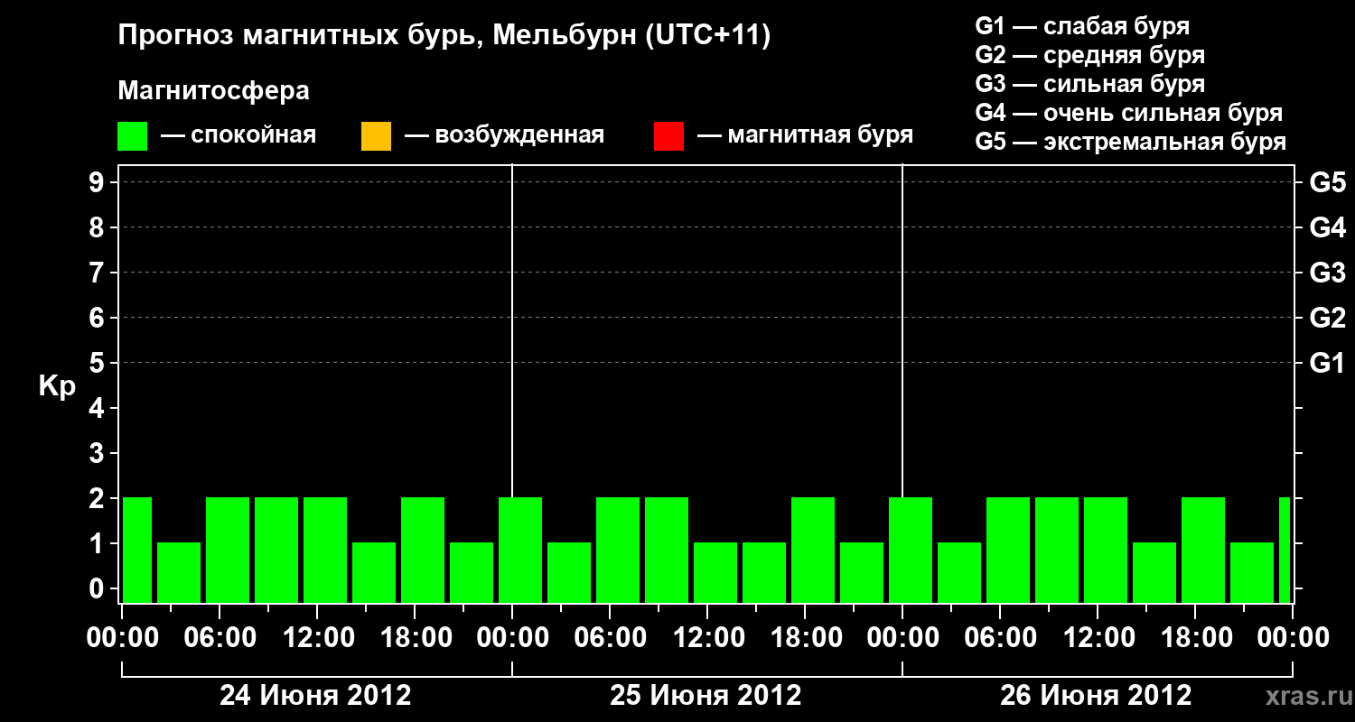 Прогноз магнитных бурь в Мельбурне — 24 июня 2012 года