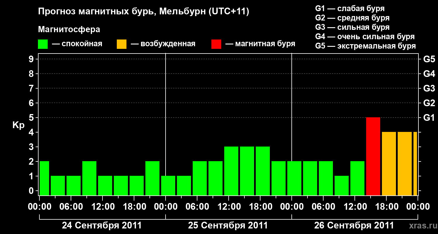 Прогноз магнитных бурь в Мельбурне — 24 сентября 2011 года
