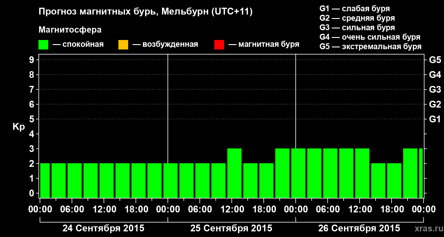 Прогноз магнитных бурь в Мельбурне — 24 сентября 2015 года