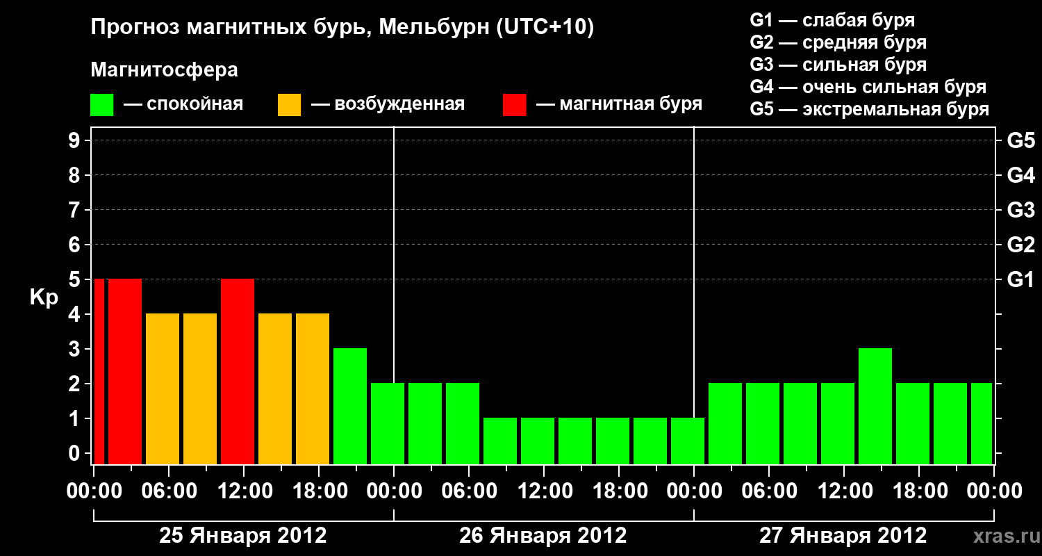 Прогноз магнитных бурь в Мельбурне — 25 января 2012 года